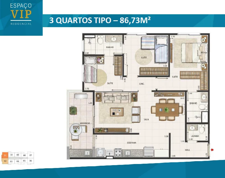 Apartamentos de 3 Quartos com 86m² até 89m²